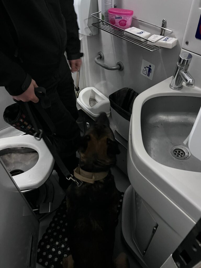 У вбиральні пасажирського вагона, в сміттєвому баку, вони виявили два флакони з лікарськими препаратами, що містять психотропні речовини — Alprazolam та Klonazepam. Ймовірно, їх намагалися приховано перемістити через кордон до України, сховавши серед відходів.