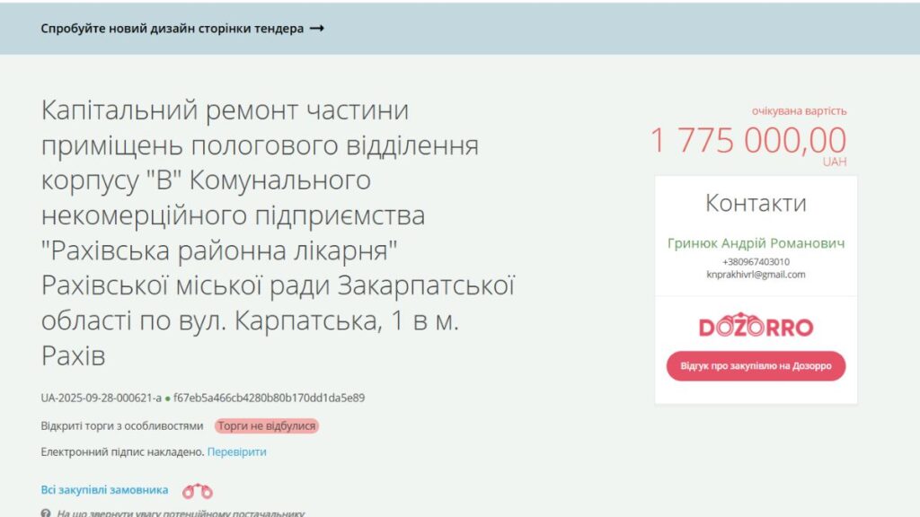 Цікаво, що тендер на модернізацію частини пологового відділення оголошували й 28 вересня. Втім, пропозицій від потенційних учасників не надійшло — 12 жовтня торги не відбулися.
