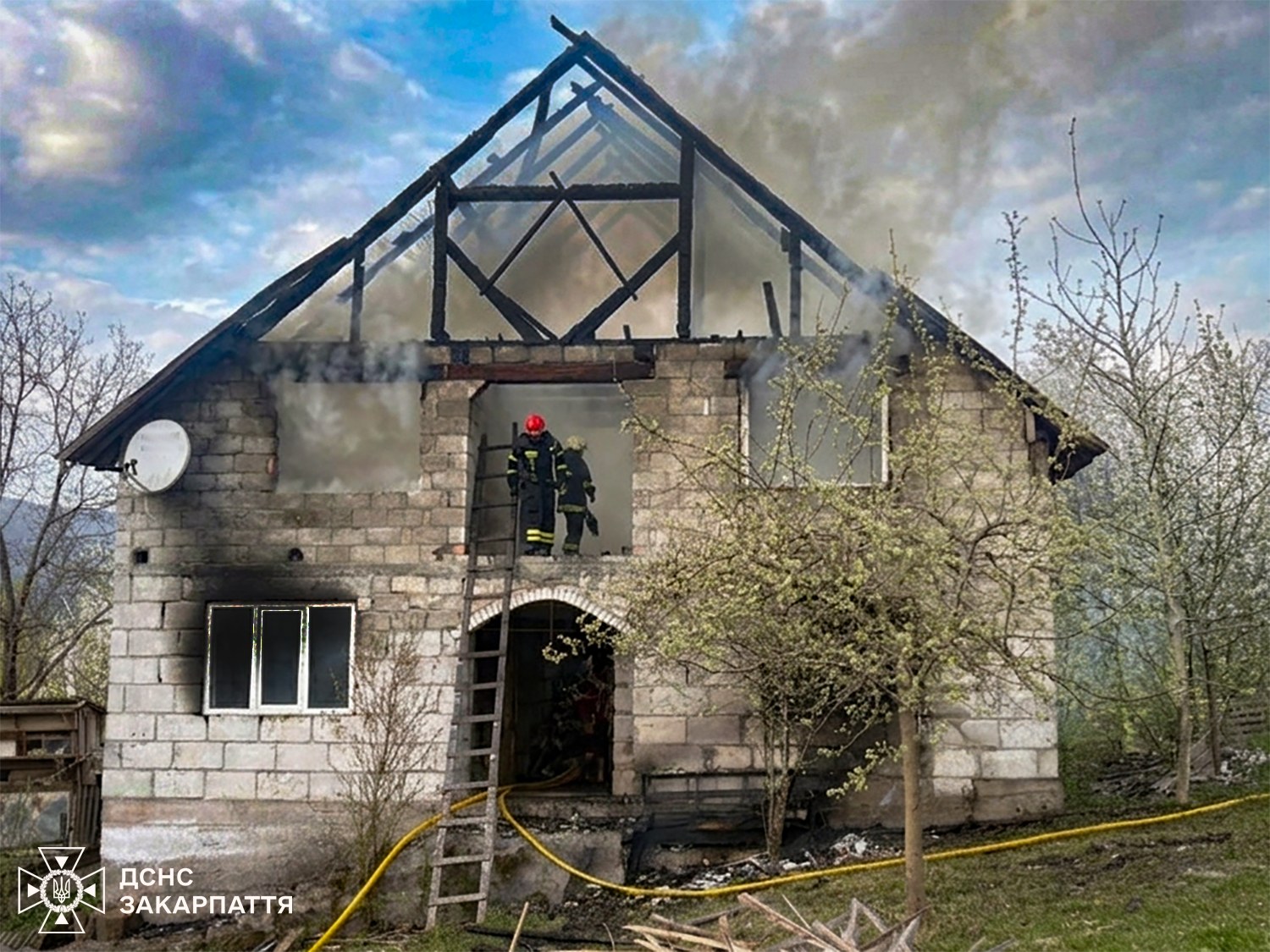 На Рахівщині вогнеборці не допустили перекидання пожежі на сусідню оселю під час загоряння двоповерхового житлового будинку в селищі Великий Бичків.