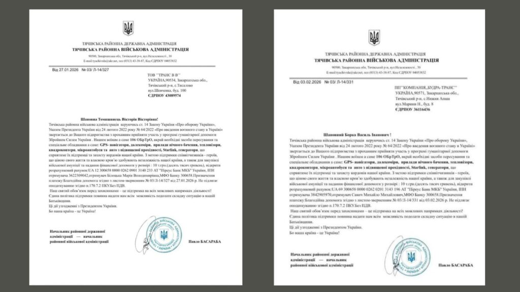 У Тячівській районній державній адміністрації офіційно наголошують, що такі звернення є неправдивими та мають шахрайський характер. Районна державна адміністрація не здійснює збір коштів у телефонному режимі, через месенджери чи приватні повідомлення та не уповноважувала жодних осіб звертатися до підприємців із подібними проханнями.