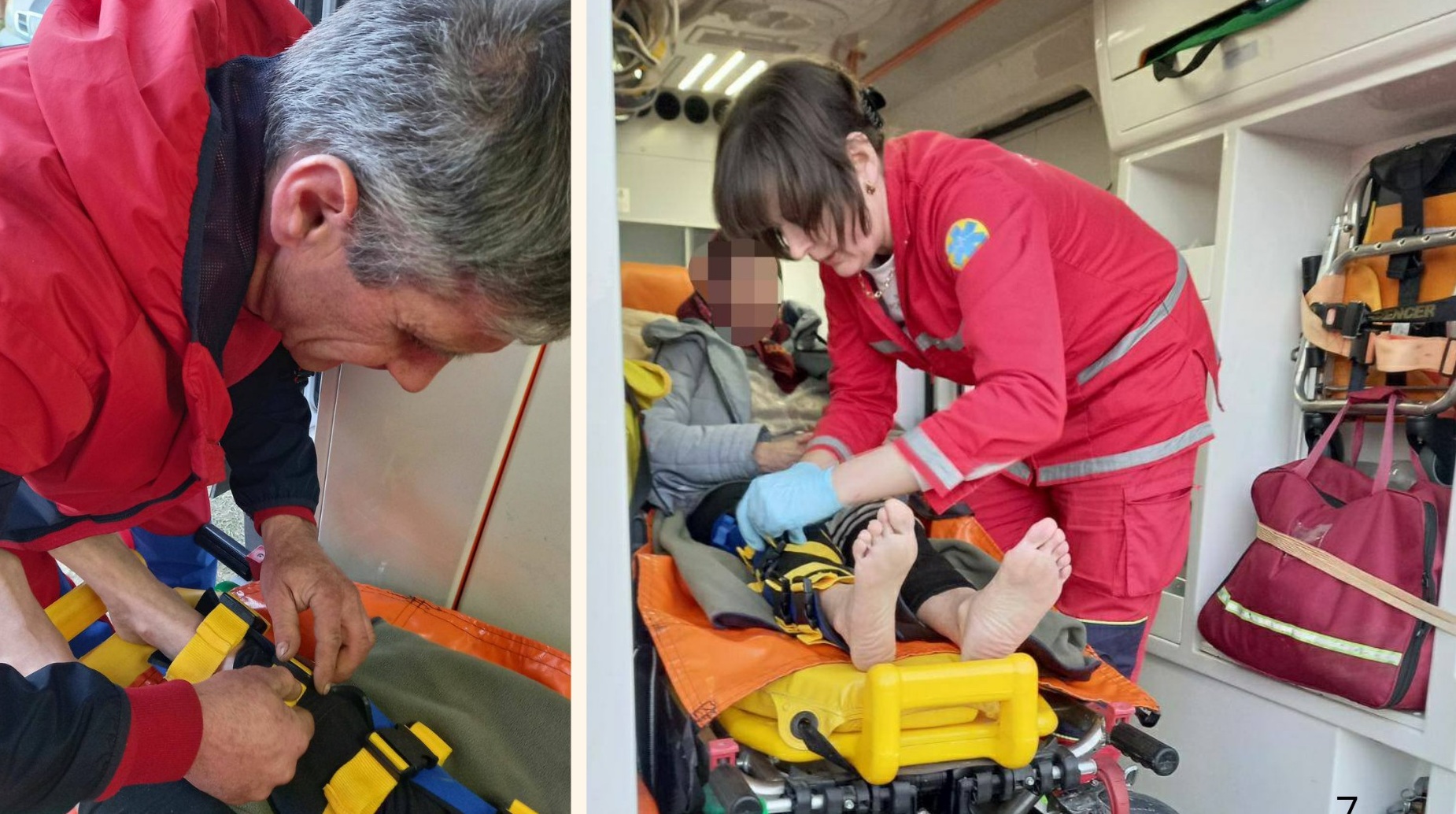 На місце оперативно прибула бригада №1205 у складі парамедика Кароліни Кузьмик та екстреного медичного техніка Василя Павлюка. Медики оцінили стан пацієнтки, зняли больовий синдром, зафіксували травмовану ногу та надали необхідну допомогу. Після цього жінку доставили до Рахівської районної лікарні для подальшого обстеження та лікування.