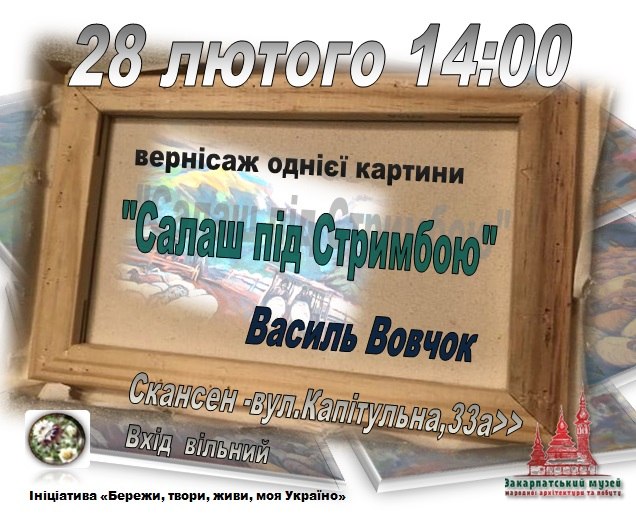У Закарпатському музеї народної архітектури та побуту цими вихідними відбудеться вернісаж однієї картини. У центрі події — робота Василя Вовчка «Салаш під Стримбою».