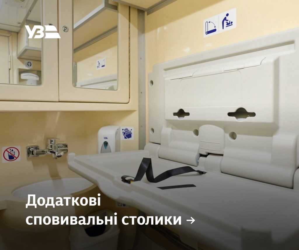 Компанія також отримала запас сповивальних столиків та захисних підвісних стільців у вбиральні. Перші зразки вже є в оновленому вагоні RIC на варшавському напрямку, далі буде більше.