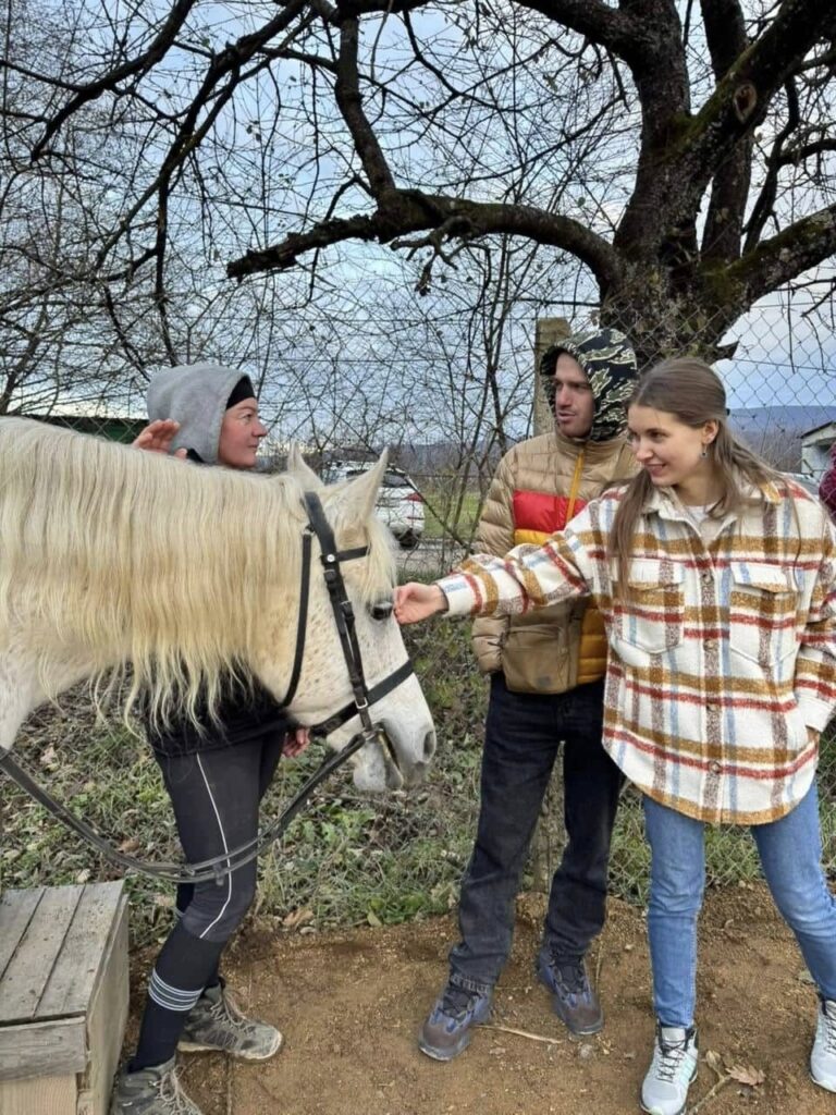 Захисники разом із сім’ями відвідали приватну конюшню «Unicorn», де взяли участь у заняттях з іпотерапії — практики, що використовує спілкування з кіньми для відновлення емоційного та фізичного стану.