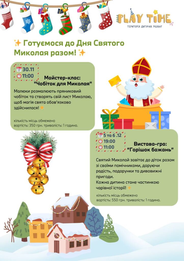 Святий Миколай завітає до діток разом зі своїми помічниками, даруючи радість, подарунки та дивовижні пригоди. На дітей чекають чарівні історії, усмішки та святковий настрій, який зігріє всю родину.