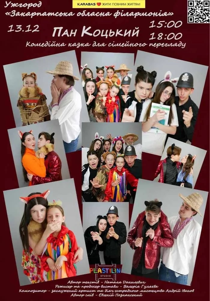 Квитки: https://uzhhorod.karabas.com/pan-kots-kyy-vystava-dlya-simeynoho-perehlyadu-3/order/
