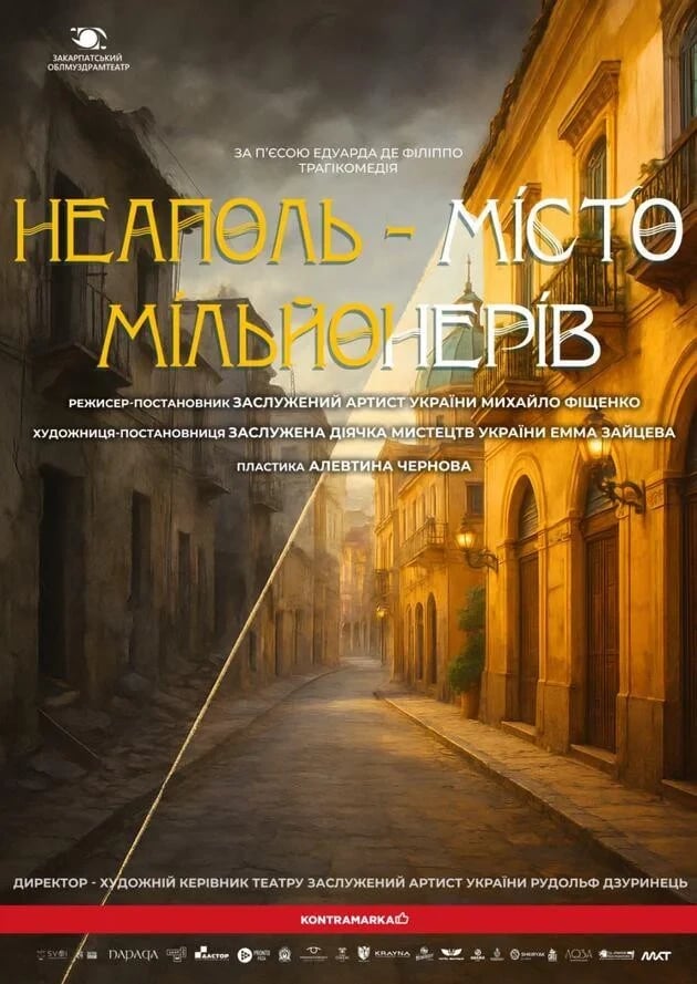 Вистава “Неаполь місто мільйонерів” створена за п’єсою відомого італійського драматурга, актора, режисера, автора неаполітанського театру Едуардо де Філіппо. У виставі порушуються гострі питання виживання під час війни: вибір між порядністю та вигодою, совістю й розрахунком, вірністю та грошима.