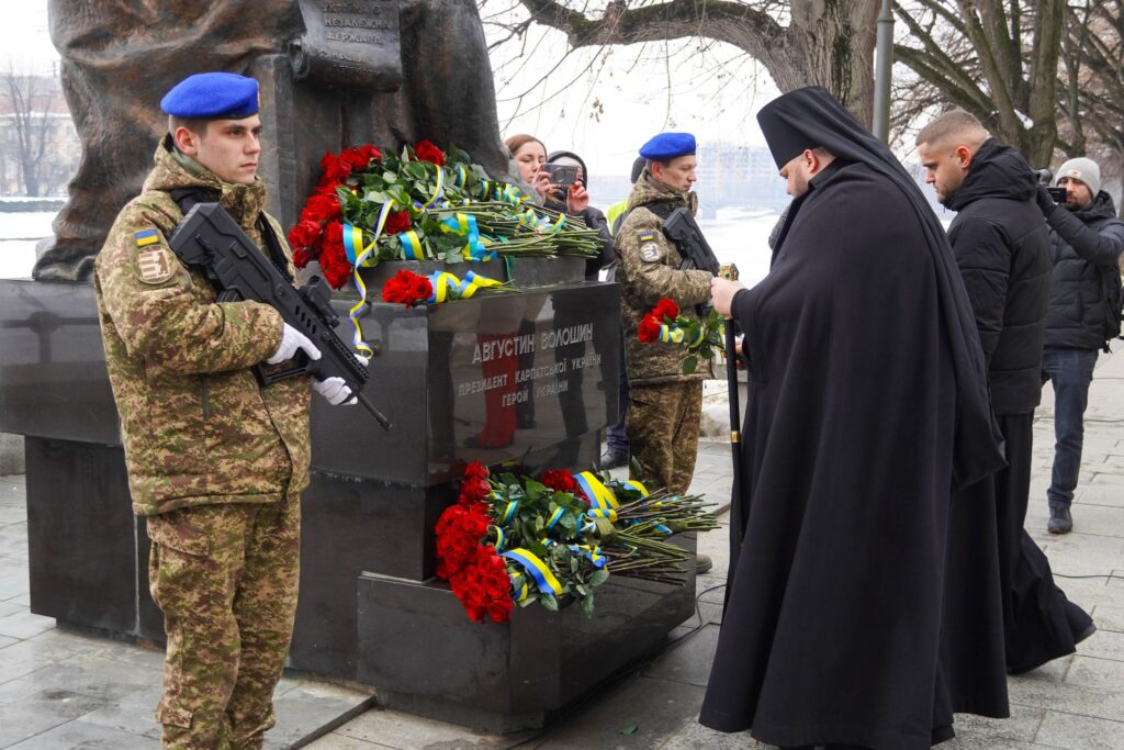 Сьогодні Україна відзначає День Соборності та 107-му річницю проголошення Акту злуки УНР і ЗУНР. З нагоди державного свята зранку в Ужгород біля пам’ятника Герою України, президенту Карпатської України Августин Волошин зібралися керівництво області й міста, військові, духовенство, дипломати та мешканці громади.