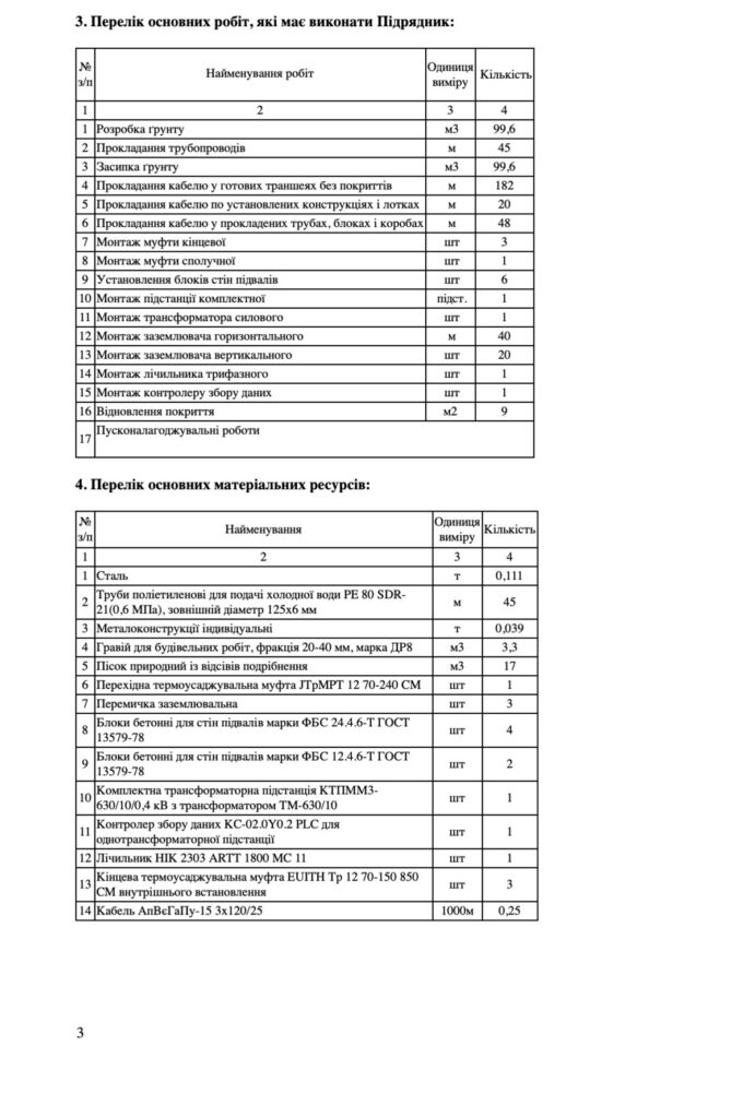 Серед основних робіт, які має виконати підрядник: