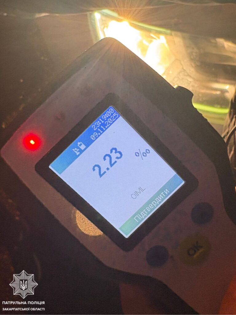 Водієві запропонували пройти огляд на стан сп’яніння на стан сп’яніння. Результат — 2,23‰.
