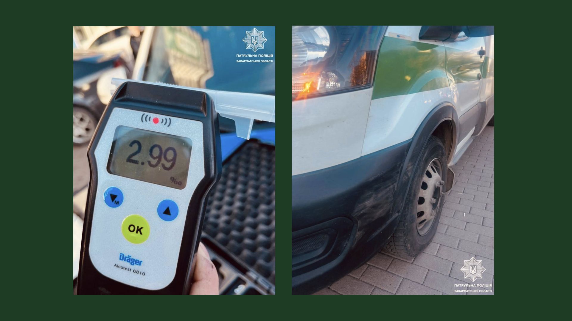 Під час спілкування з винуватцем події інспектори виявили у нього ознаки алкогольного сп’яніння. Огляд на стан сп’яніння, проведений на місці, показав 2,99‰ алкоголю в крові.