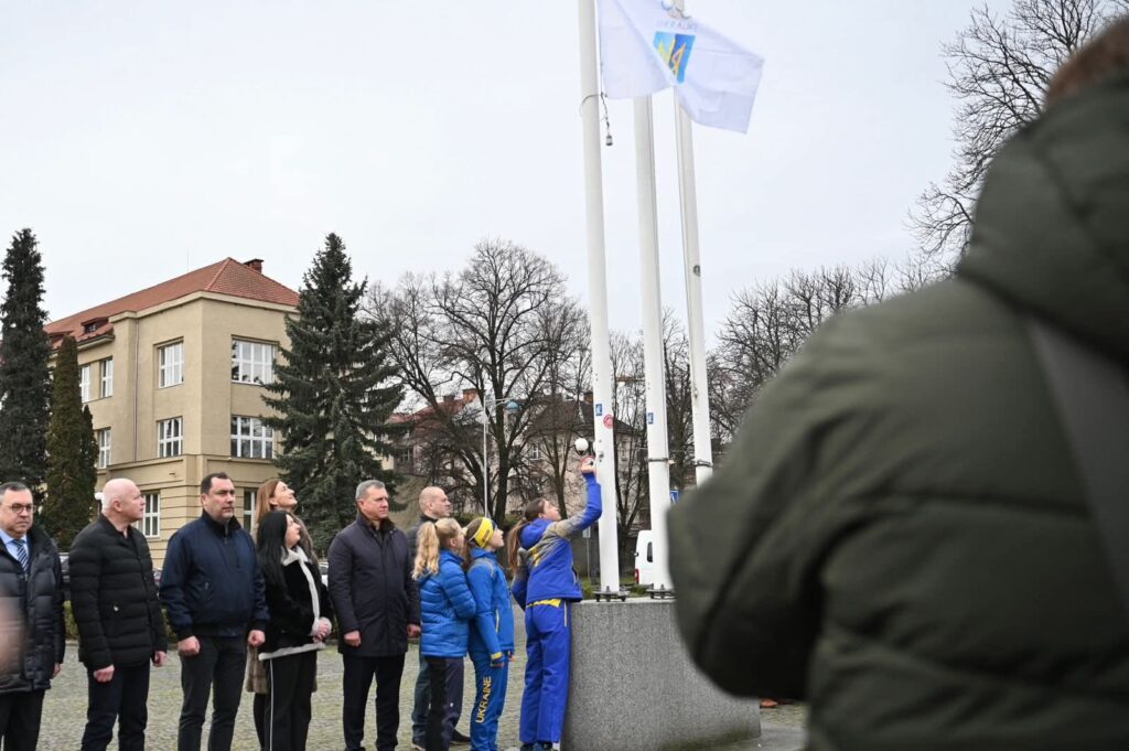 Олімпійський прапор сьогодні підняли в Ужгороді з нагоди відкриття Зимових Олімпійських ігор-2026 в Італії.