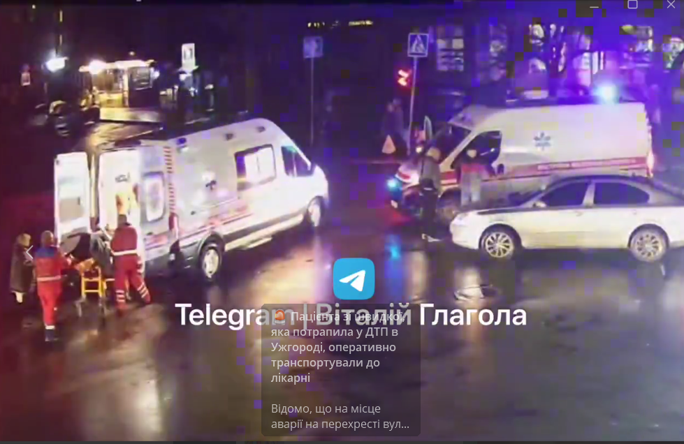 За попередніми даними, сірий автомобіль Skoda Octavia, який рухався з вулиці Капушанської у напрямку проспекту Свободи, не надав перевагу в русі кареті швидкої допомоги. Медичний автомобіль рухався з увімкненими проблисковими маячками у бік мосту. Внаслідок цього сталося зіткнення.