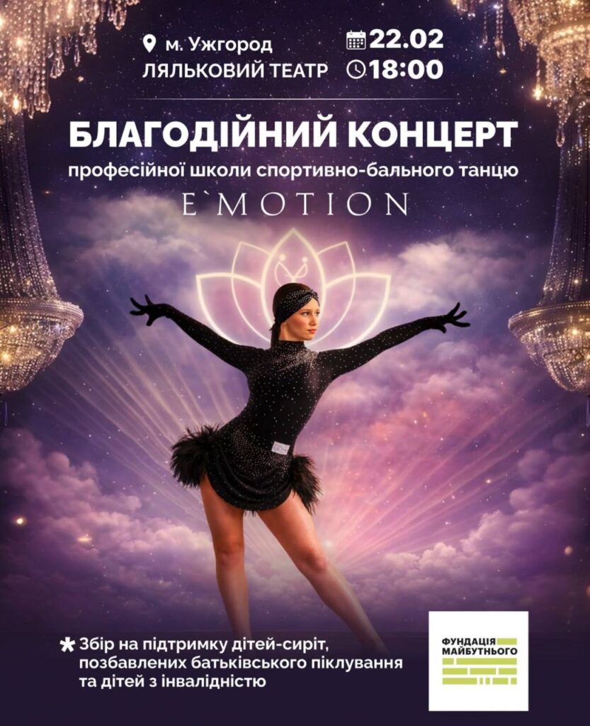 22 лютого в Ужгороді відбудеться традиційний благодійний концерт професійної школи спортивно-бального танцю E’motion.