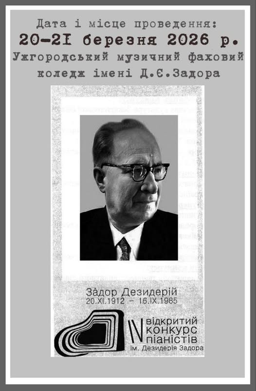 Ужгородський музичний фаховий коледж імені Д.Є. Задора оголошує прийом заявок на участь у IV відкритому конкурсі піаністів імені Дезидерія Задора.