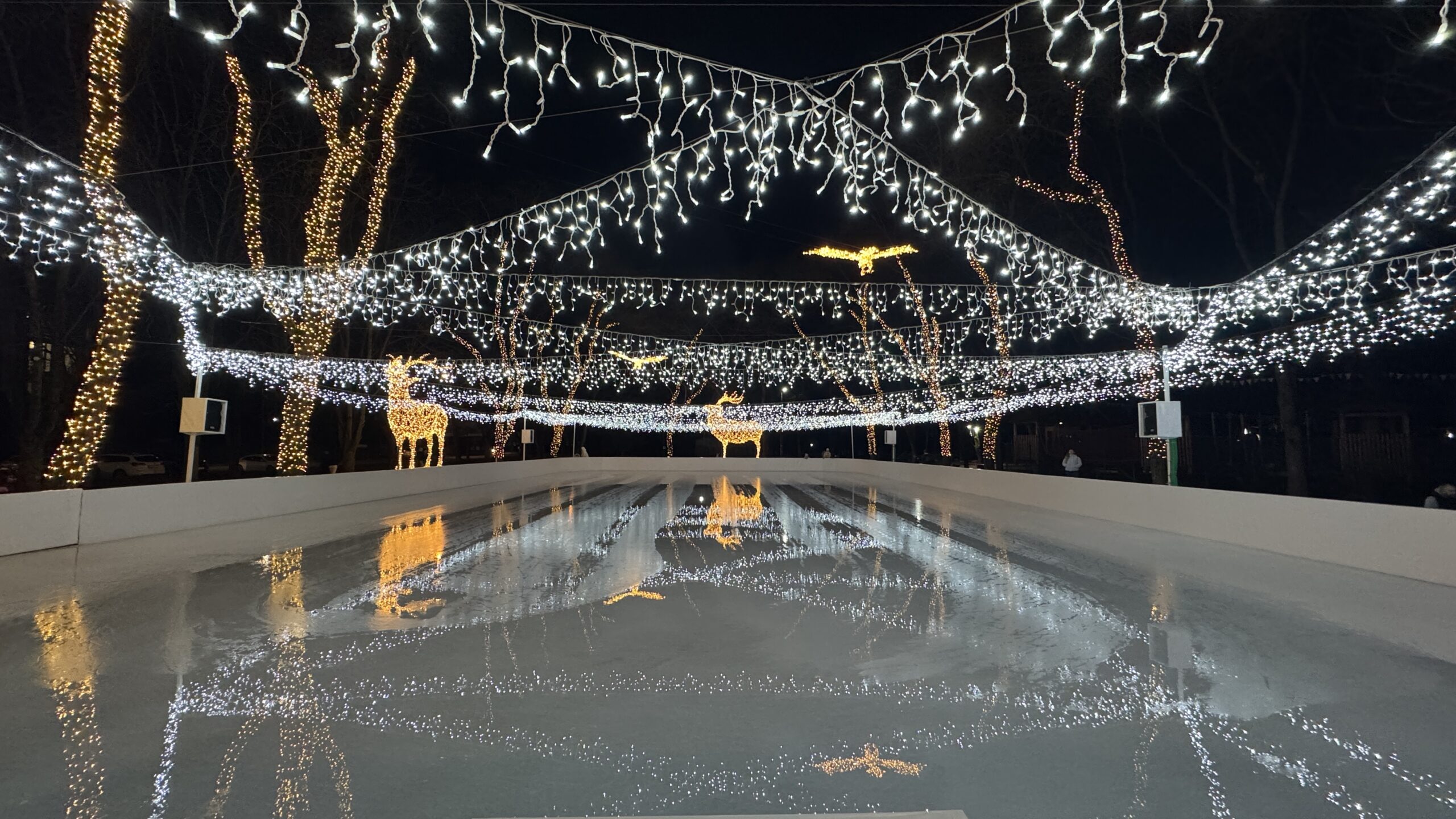 Тисячі мерехтливих вогників, сяючі олені, прикрашані дерева та музика створюють справжню зимову казку.