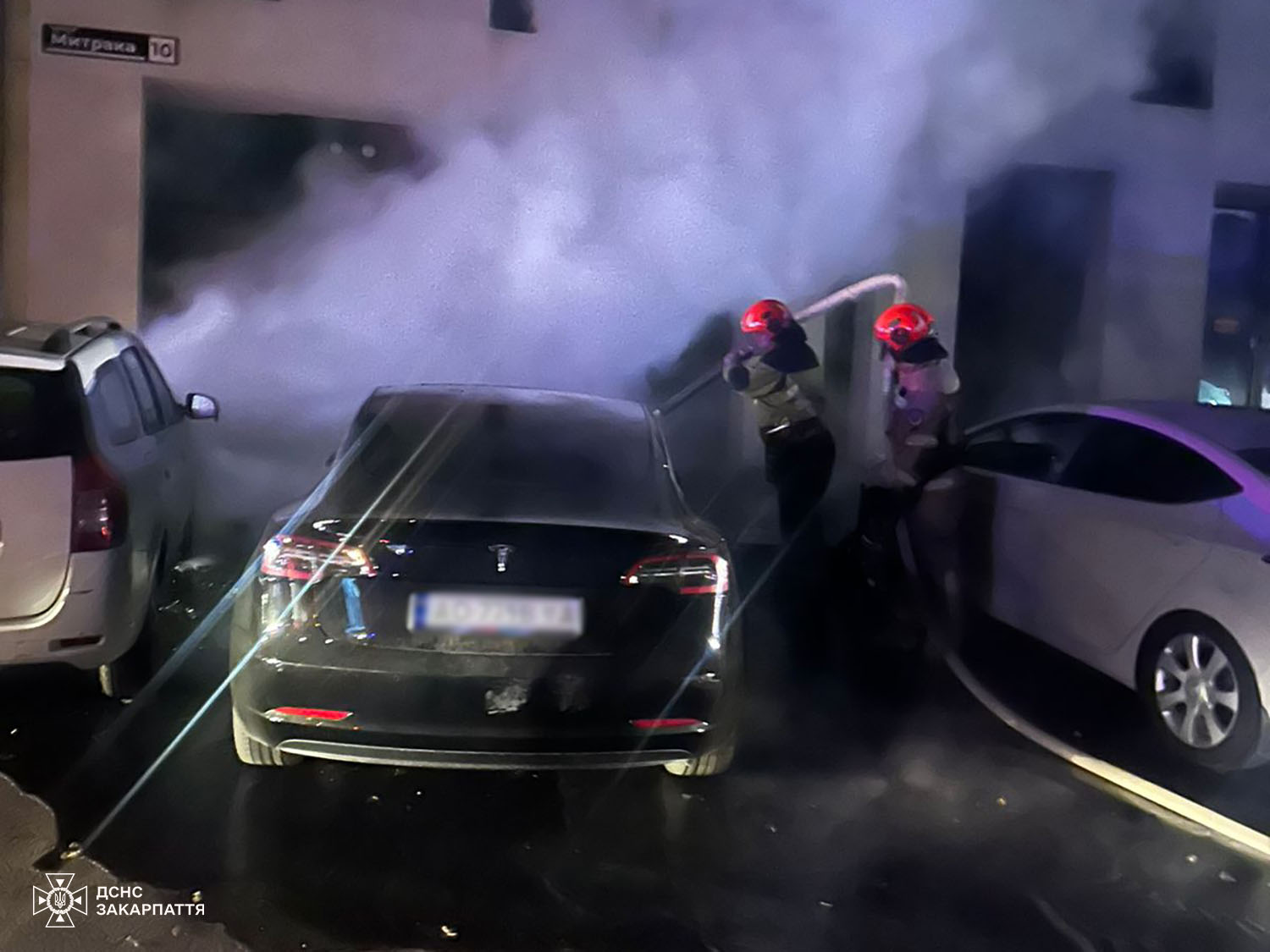 10 жовтня о 00:21 до Служби порятунку надійшло повідомлення про пожежу автомобіля Tesla Model 3 на вулиці Олександра Митрака в місті Ужгород.