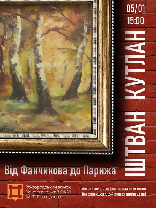 5 січня 2026 року у конференц-залі Ужгородського замку відбудеться публічна лекція, присвячена життю та творчості відомого закарпатського митця Іштвана Кутлана — представника знаної родини Кутланів із села Фанчиково на Виноградівщині.