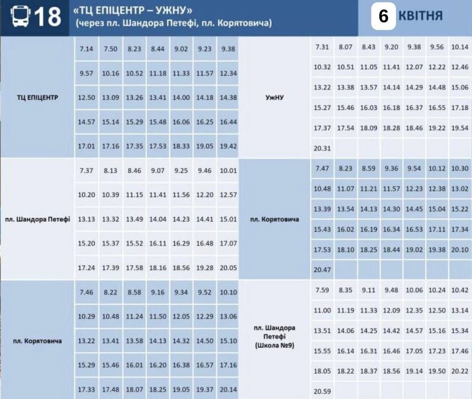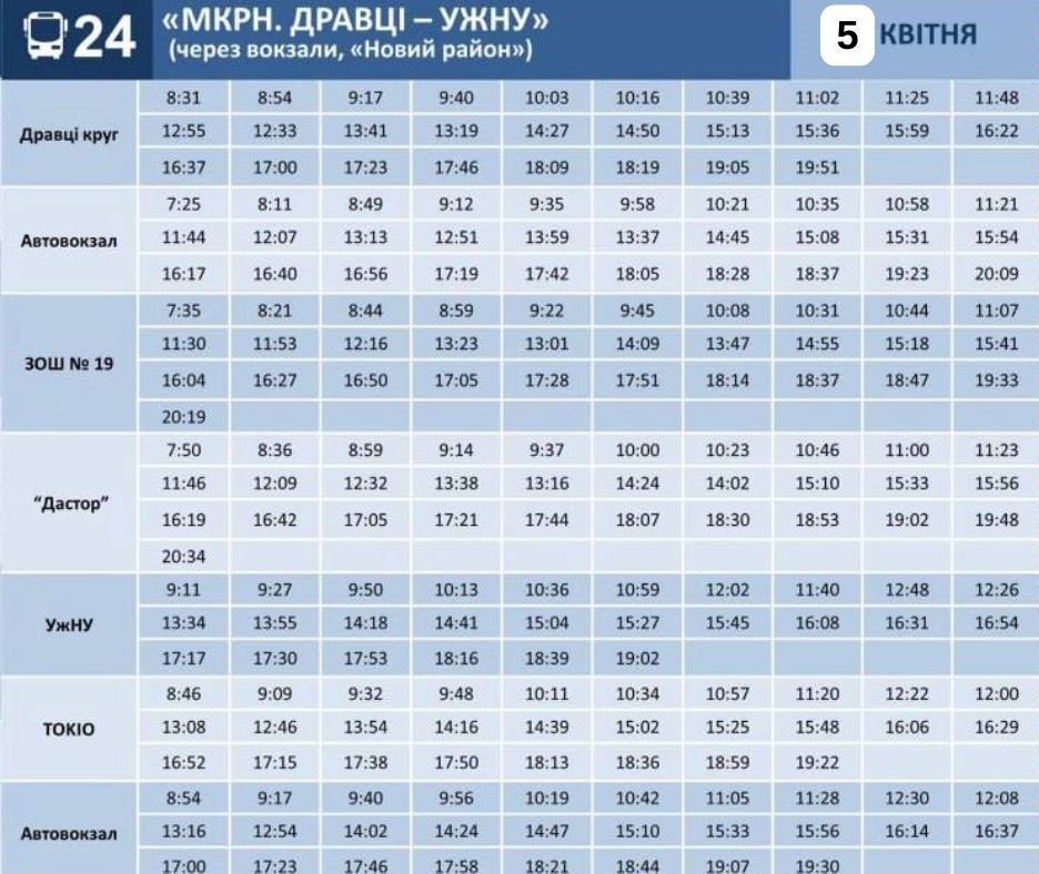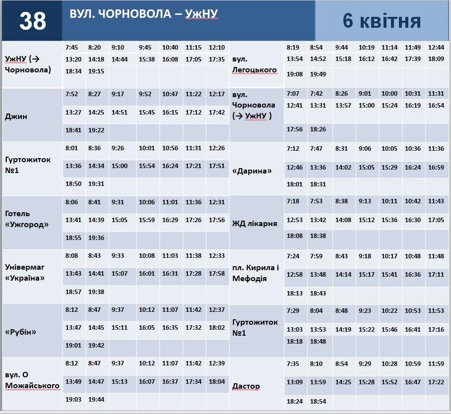 У період святкування Великодня у Ужгород зміниться графік руху громадського транспорту. Відповідний розклад на 5–6 квітня 2026 року оприлюднило Ужгородський муніципальний транспорт.