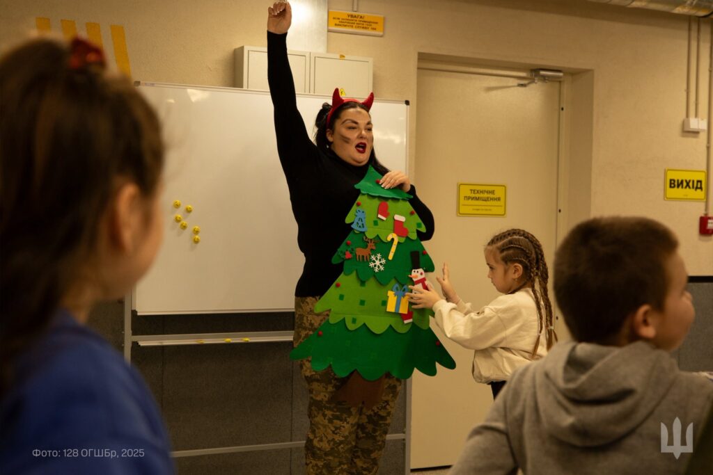 Дітлахи отримали солодкі подарунки, грали в цікаві ігри разом з аніматорами. Особливу атмосферу створив військовий оркестр, який зіграв улюблені мелодії та додав події святкового настрою. Дитяче свято допомогли створити офіцери відділення психологічної підтримки персоналу та цивільно-військового співробітництва 128 ОГШБр.