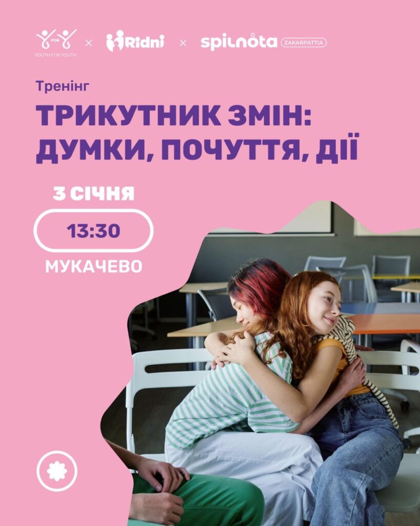 Жителів Мукачівської громади запрошують долучитися до тренінгу «Трикутник змін: думки, почуття, дії», присвяченого розвитку емоційної стійкості та самопідтримки.