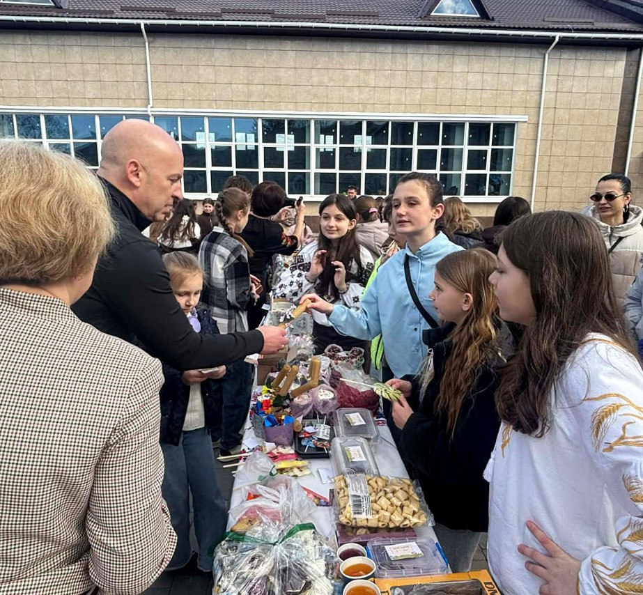 Окремо делегація відвідала благодійний ярмарок, організований учнями та педагогами. Там збирали кошти на реабілітацію військового 81-ї окремої аеромобільної бригади, який зазнав тяжкого поранення на фронті.