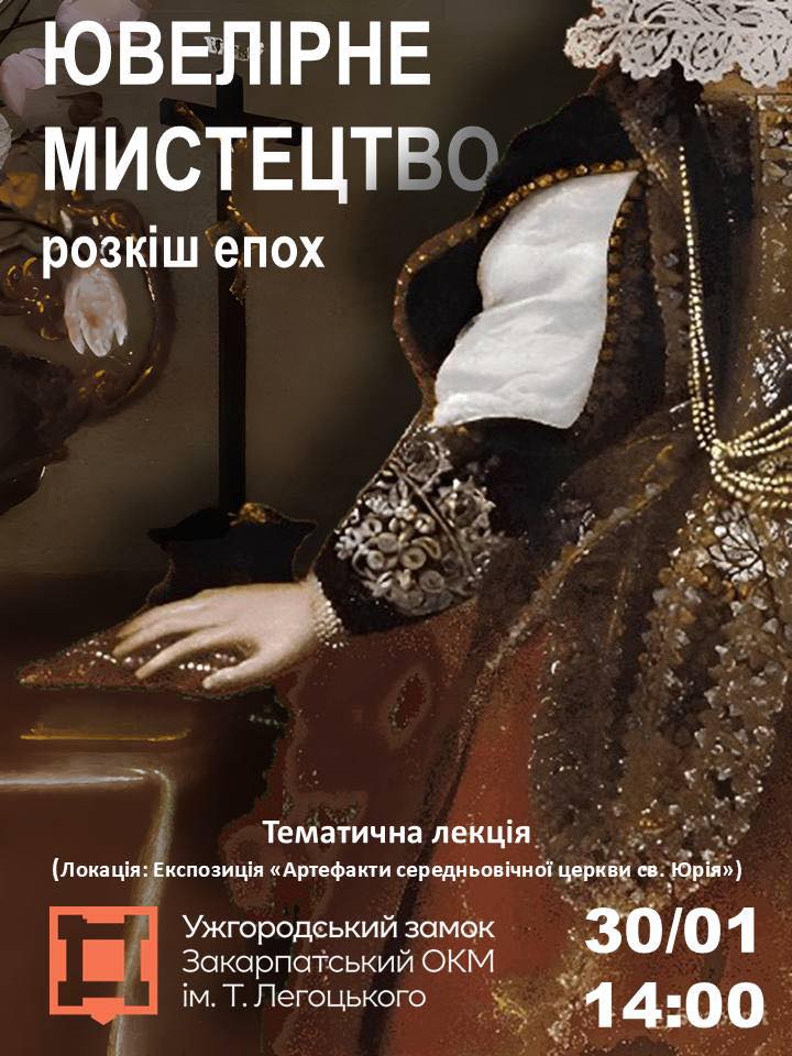 В Ужгородському замку відбудеться тематична лекція, присвячена ювелірному мистецтву та культурі розкішного побуту минулих епох. Захід приурочений до Дня ювеліра та розкриватиме значення коштовностей як історичних артефактів і символів статусу, влади та витонченого смаку.