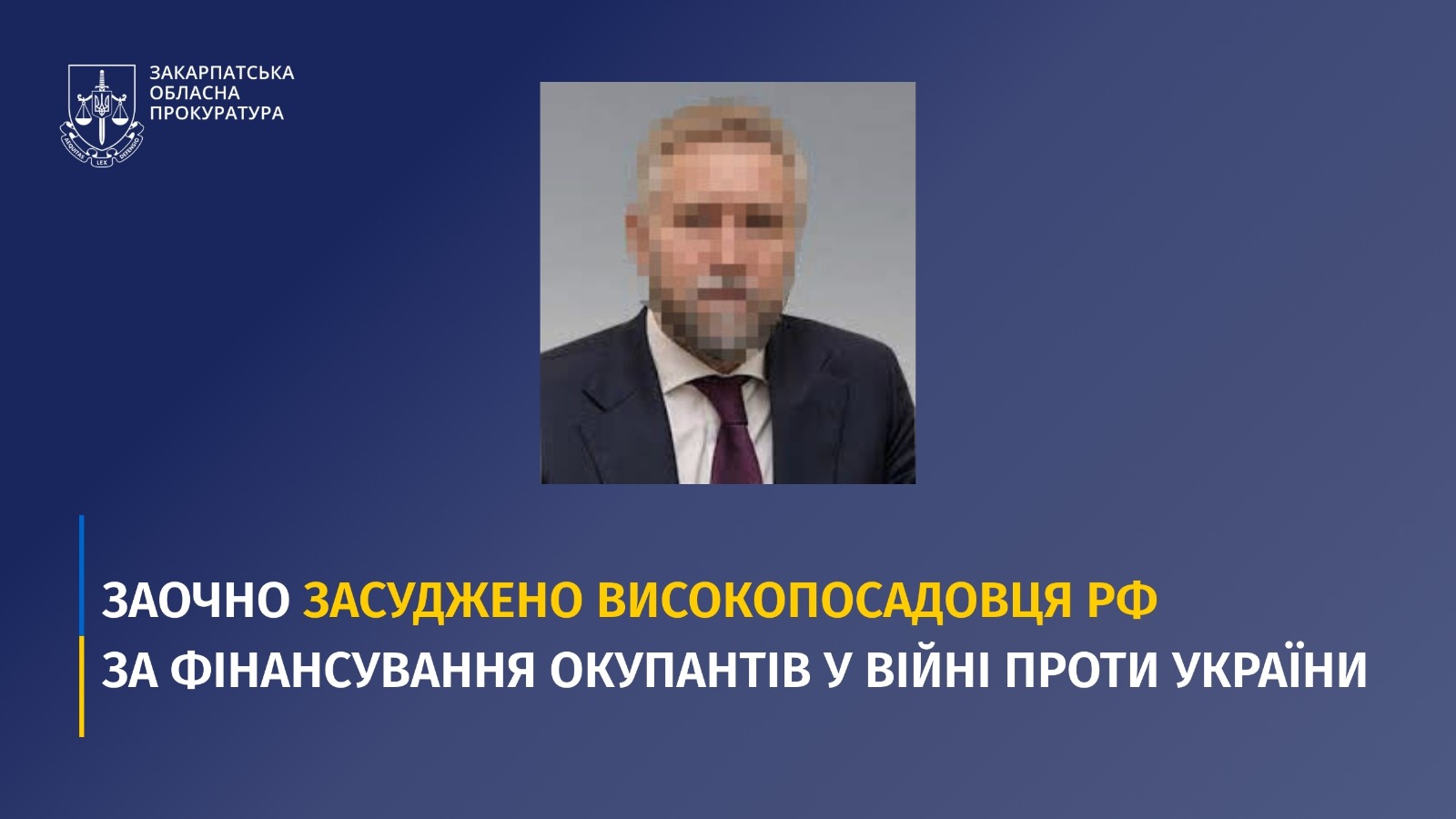 На Закарпатті заочно засуджено високопосадовця рф за фінансування окупантів у війні проти України.