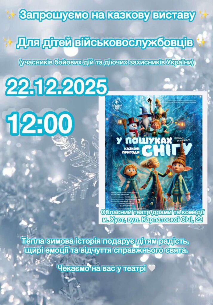 У Закарпатському обласному театрі драми та комедії відбудеться казкова театральна вистава для дітей військовослужбовців — учасників бойових дій та діючих захисників України.