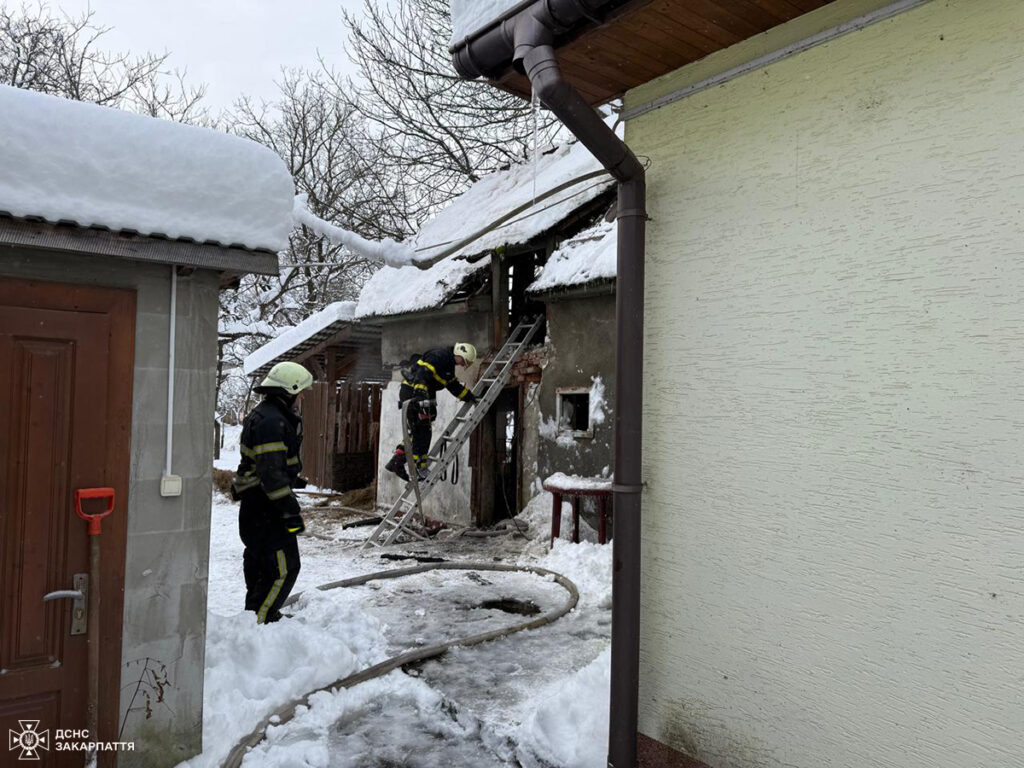 Під час прибирання снігу у дворі мешканець селища Вишково помітив загоряння під дахом сусідської літньої кухні на вулиці Тиса. Чоловік оперативно викликав рятувальників та повідомив власників будівлі про небезпеку.