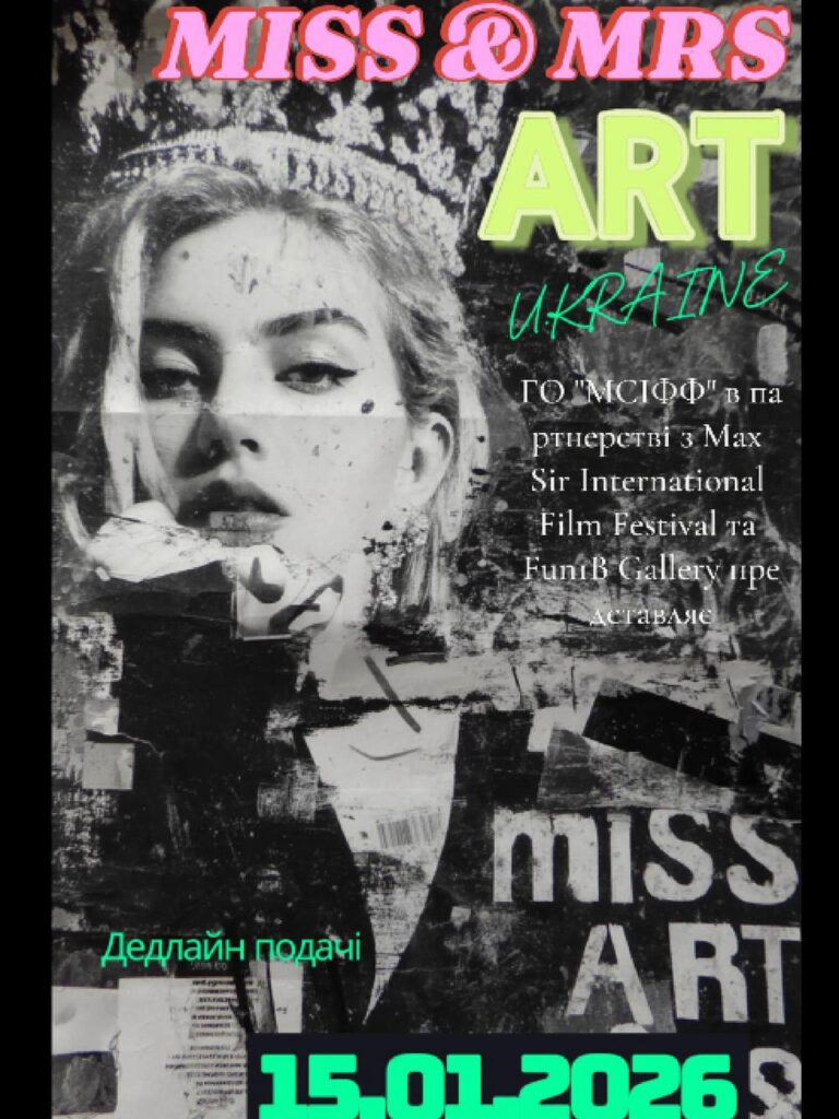 Miss & Mrs. Art Ukraine – це національний конкурс для жінок творчих професій, який організовує ГО «МСІФФ» в партнерстві з Max Sir International Film Festival та Fun1B Gallery. Це не про дефіле чи стандартні конкурси краси. Це про творчість, самоідентифікацію, силу історії та культурний вплив. Мета конкурсу – відкрити талановитим дівчатам та жінкам шлях до визнання, показати їхній унікальний голос і дати можливість презентувати власні мистецькі або соціальні проєкти Україні та світу.