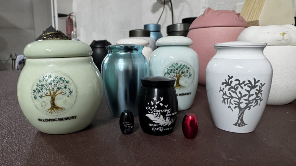 - Індивідуальна кремація: тварину спалюють окремо, прах повертають власникам у спеціальній урні або іншій ємності.