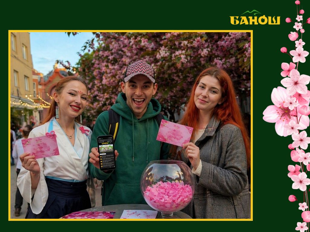 Журналісти медіа «Банош» долучилися до атмосфери «Сакура Фесту 2026» та влаштували рожеву лотерею за підписку.
