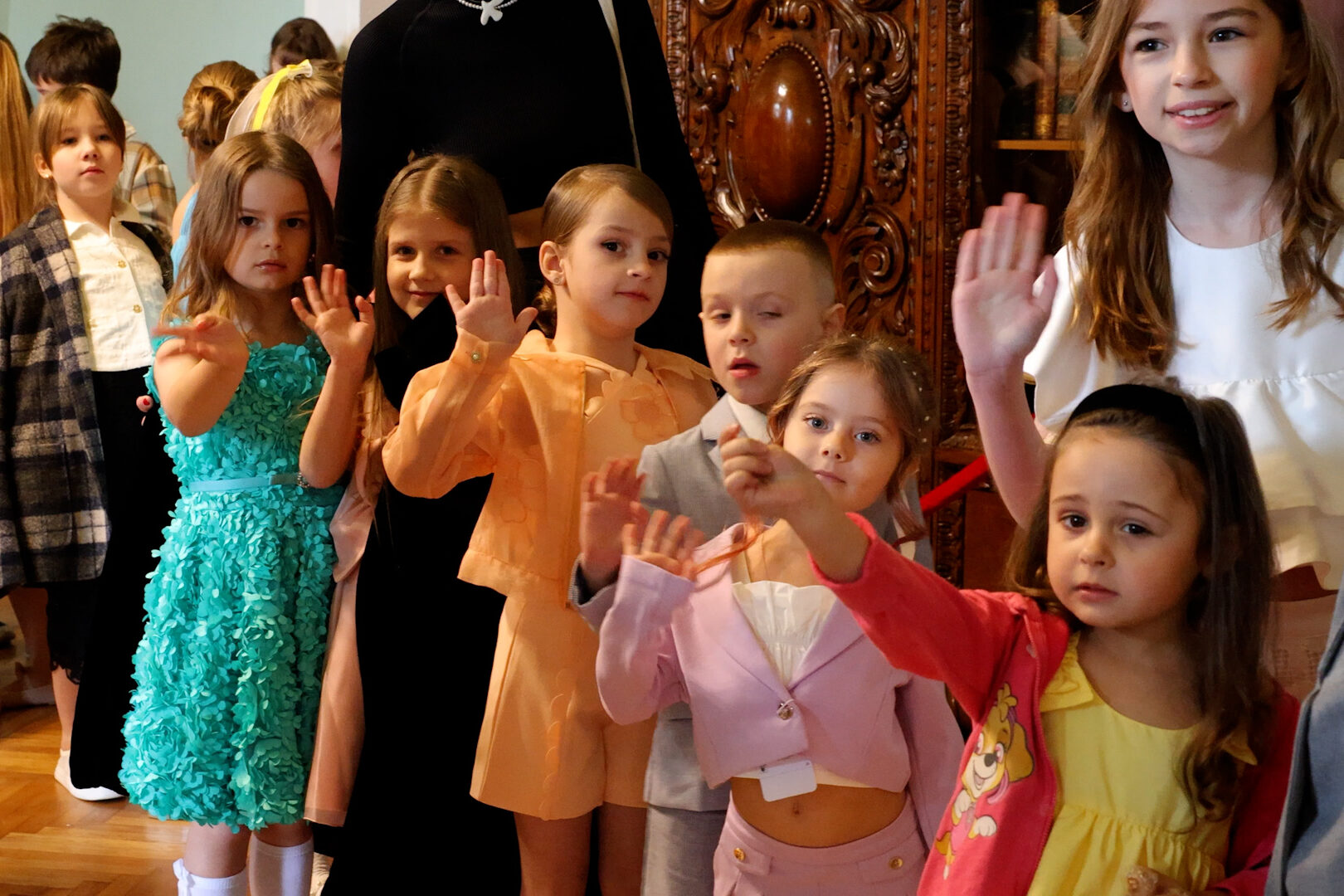 На подіумі представили колекції від TESORO, зокрема образи іспанських брендів Mayoral та Abel & Lula. Вбрання підбирали так, щоб дітям було комфортно, але водночас святково.