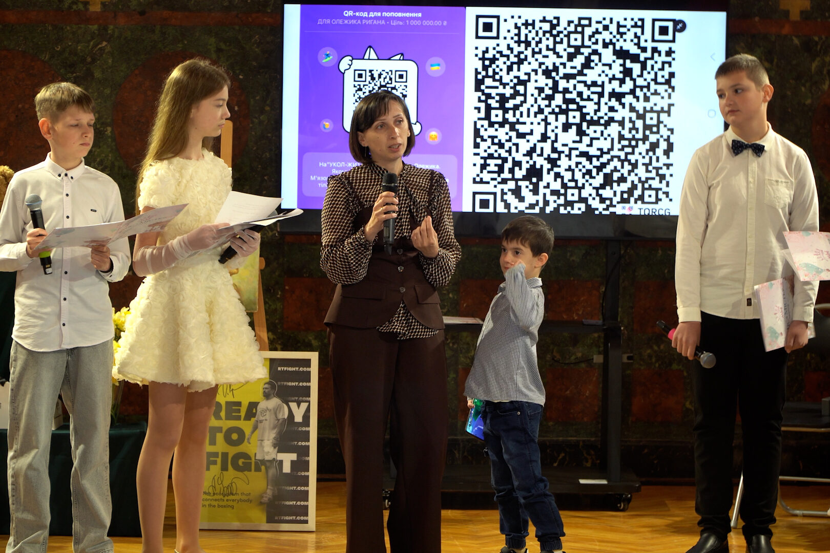 І поки учасники звикали до подіуму, у залі відбувалося інше важливе – спільними зусиллями збирали кошти на лікування дитини.