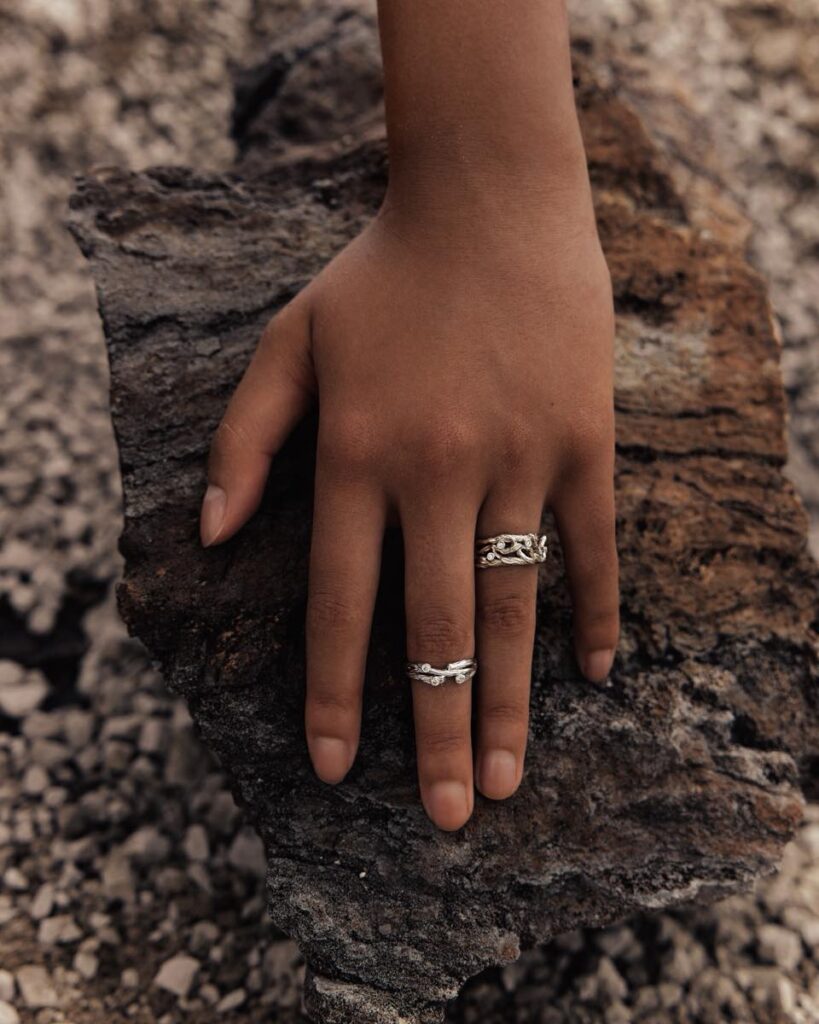 Ці простори пропонують не лише вишукані прикраси, але й унікальні вироби з дерева – ще одне захоплення братів Кочутів. Одним із яскравих прикладів є використання японської техніки мокуме ґане, яка сягає корінням XVII століття. Цей метод полягає у створенні багатошарових металевих заготовин з чергуванням кольорових металів. Після нагрівання метали спікаються, утворюючи неповторну фактуру, що нагадує структуру дерева.