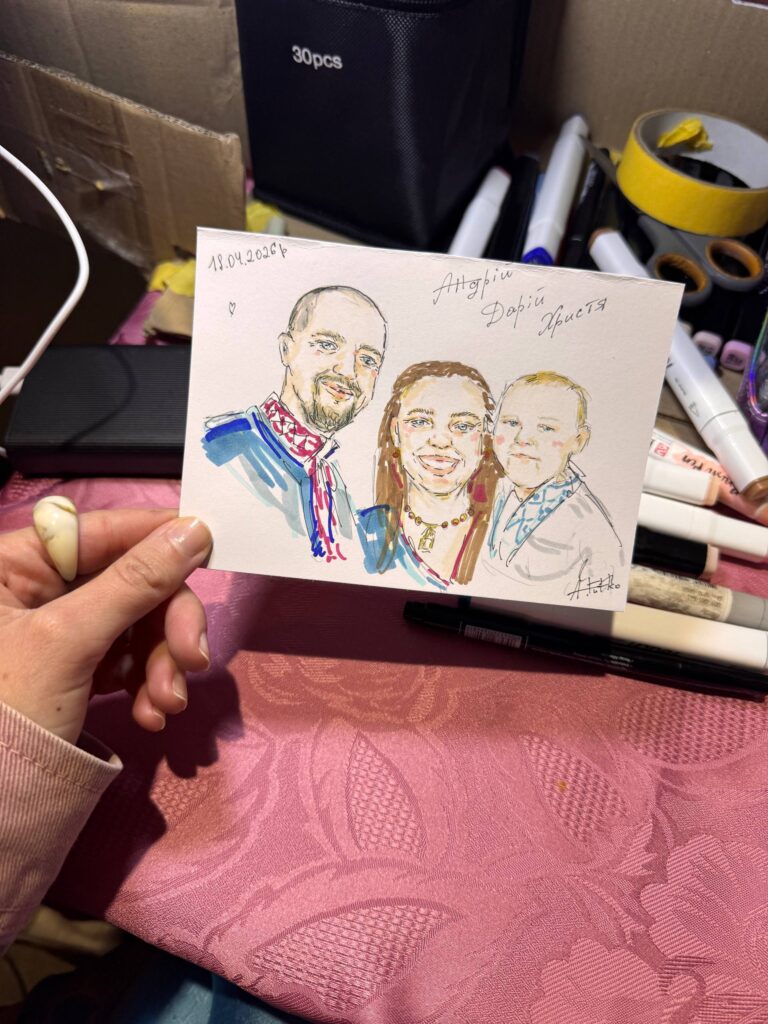 Я дуже люблю малювати портрети, тому мені хотілося створити листівки, на яких буде намальована людина. Це мало бути щось маленьке, стильне, доступне і тепле. Щоб це був чудовий спогад. Не всі люди можуть дозволити собі купити великий портрет та багато хто не хоче надовго нав’язуватися. Я розуміла, що такі листівки – це дуже крута річ, але довго думала як показати, що людині справді вона потрібна. Треба було вигадати щось оригінальне, щоб люди мене помітили та підійшли, створити якесь шоу, за яким буде цікаво спостерігати.