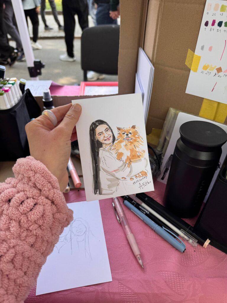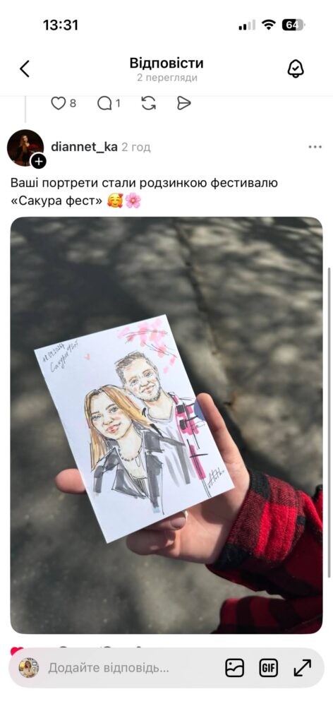 Розповім одну історію. На Сакура-фесті передостання людина, яка прийшла до мене на Art-box, сказала: коли прочитала в програмі, що на заході буде художниця, думала, що вона буде малювати шаржі чи карикатури. Я насправді таких художників дуже поважаю, бо треба мати великий талант, щоб смішно передати образ людини. Але мені хочеться зобразити найкращі риси людини, щоб вона побачила мій малюнок та впевнилася, що справді гарна. Та й загалом завдяки своїм роботам я хочу передати красу, тепло, емоцію, але одночасно з цим реальність. Бо там де є краса, може бути й потворність. Тому здебільшого мої малюнки естетичні, але я можу намалювати щось “крикливе”. Наприклад, на захисті дипломної роботи мені хотілося розповісти про злочини росіян проти дітей під час війни в Україні. Хотіла намалювати дуже багато дитячих облич, що плачуть, але мене викладачка відмовила. Сказала, що коли глядачі побачать мою роботу, відчують великий сум та пройдуть повз. Та я сама розумію, що зараз багато травмованих війною людей, тому не треба їм робити боляче.