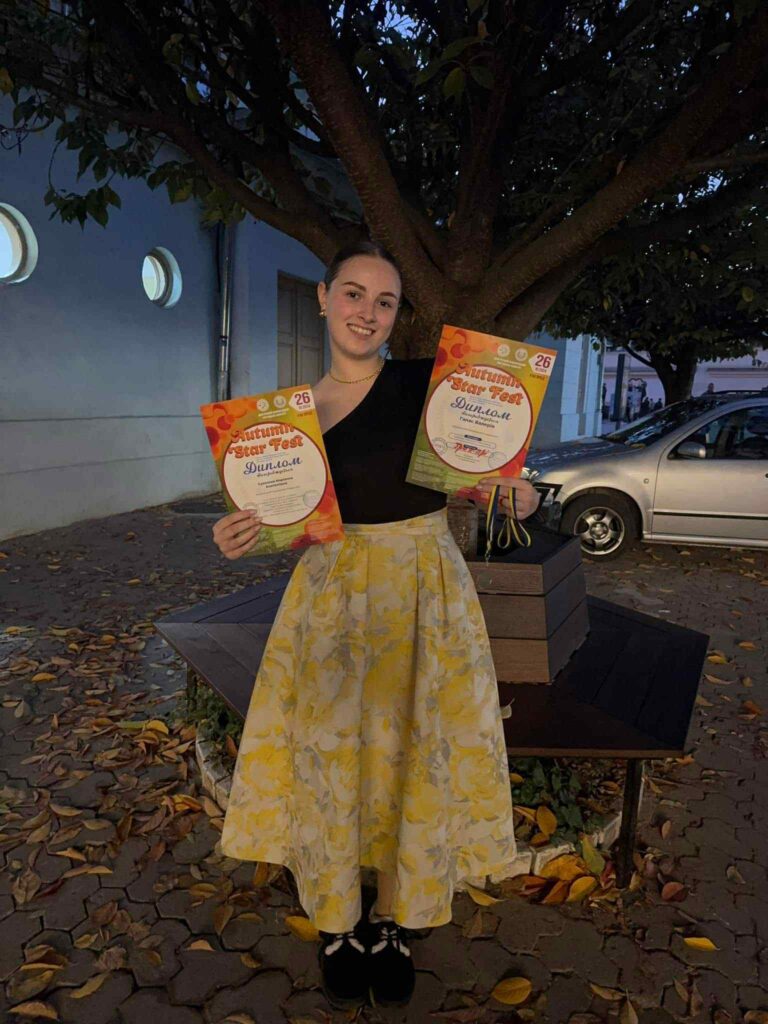 Їх багато було, більше ніж 150. Це були й всеукраїнські конкурси, куди ми їздили разом з викладачкою, і міжнародні фестивалі та конкурси, зокрема благодійні. Зараз, через воєнний стан, дуже багато онлайн-конкурсів присутні в моєму житті. Ми записуємо відео з моєю теперішньою викладачкою, публікуємо його, а потім нам поштою надсилають нагороди.