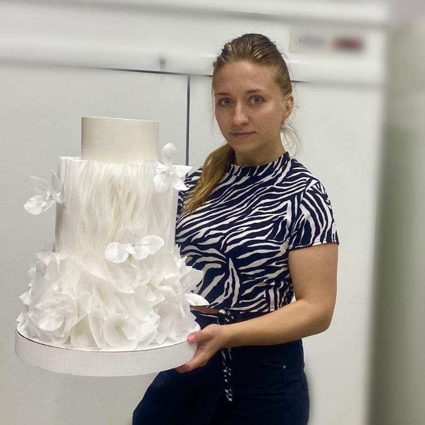 Перший торт готувала для рідних і він їм сподобався. Сказали, щоб я продовжувала цю справу. Мене це дуже змотивувало. Почала проглядати сторінки різних кондитерів, надихалася їхніми роботами, намагалася теж щось подібне зробити. Поступово почало виходити, потім почалися перші замовлення. Спочатку на маленькі торти з простим декором, інколи навіть взагалі без декору просили, просто смаколик до чаю. Але я бачила, що людям подобається те, що я роблю, тож вирішила детальніше вивчати цю справу. Почала відвідувати майстер-класи, перший з них був по ярусним тортикам, потім – по мусовим, і так далі. Так я підтягувала знання, покращувала майстерність, а часто взагалі відвідувала майстер-класи аби просто відпочити в компанії однодумців, поспілкуватися, змотивувати себе.