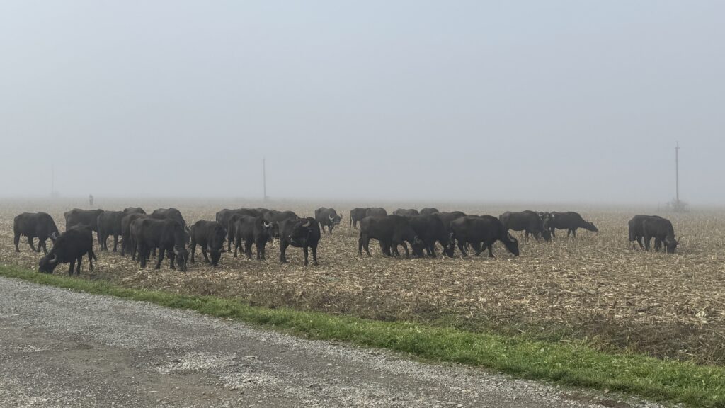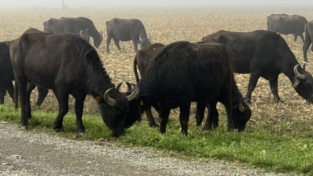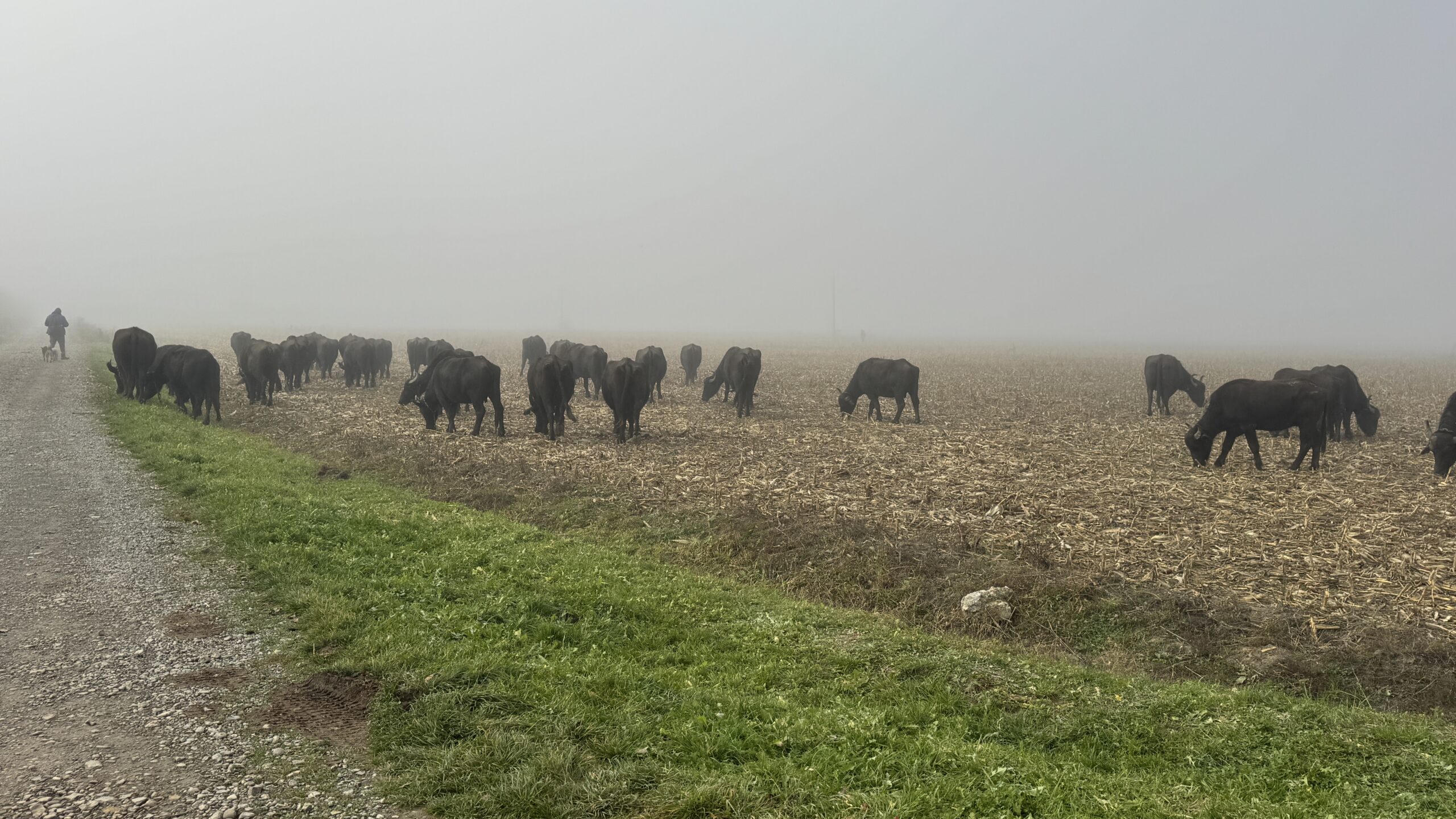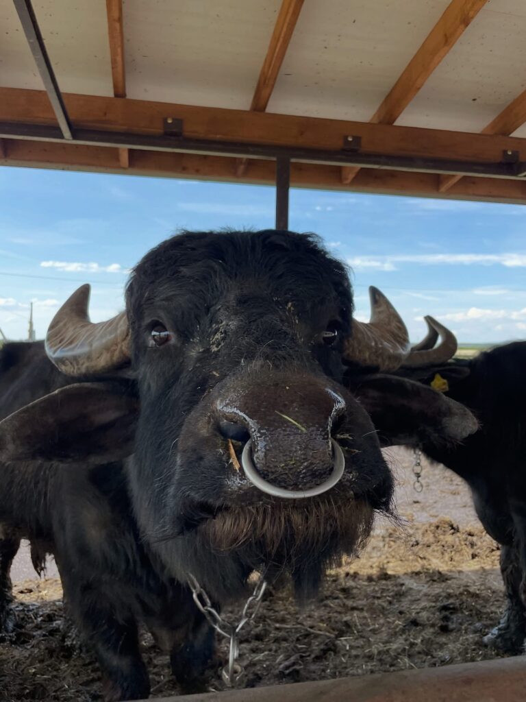 Буйволи весь рік потребують руху. Влітку, восени та навесні вони перебувають на вільному випасі, а взимку їх випускають на подвір’я у загін, якщо температура піднімається вище мінус 13°C. Харчування продумане: тварини їдять зелену масу, сіно, кормовий буряк, пшеницю та висівки – удень і вночі, а води випивають дуже багато.