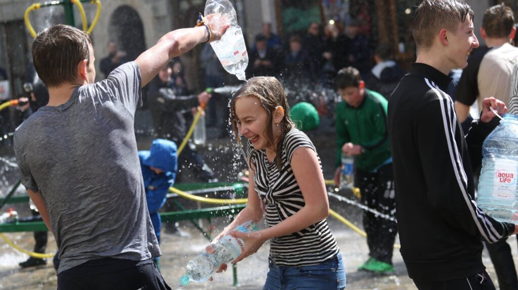 Серед гуцулів було прийнято, що хлопець, який симпатизував дівчині, відводив її до річки чи струмка і поливав водою, бажаючи їй краси та здоров’я. Натомість дівчина дарувала йому писанку. Особливо раділи хлопці, коли яйце розбивалося саме за пазухою дівчини.