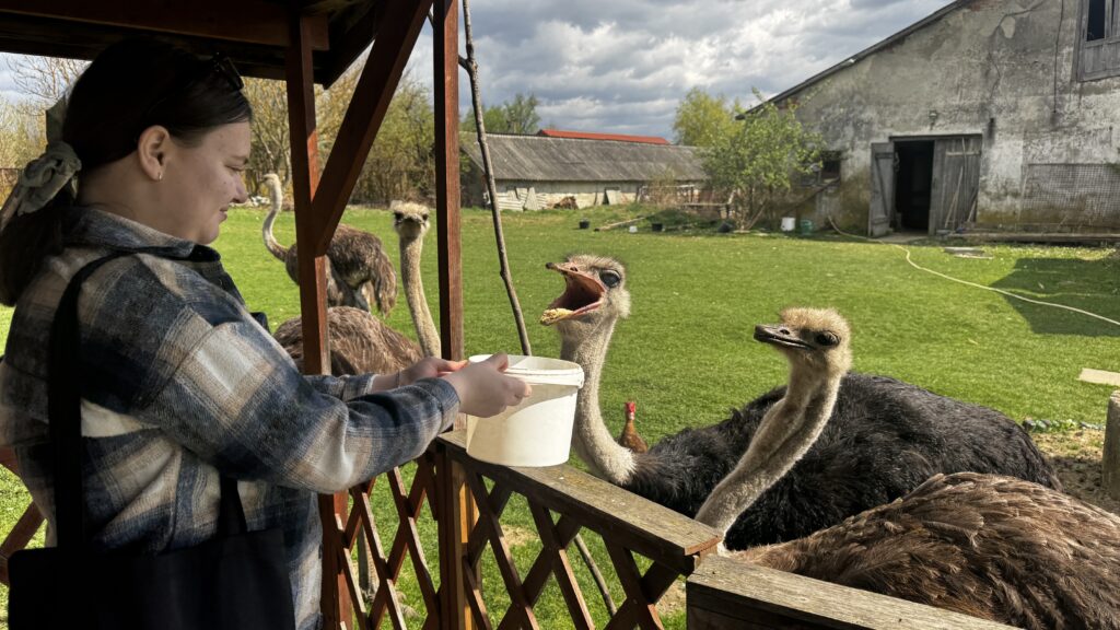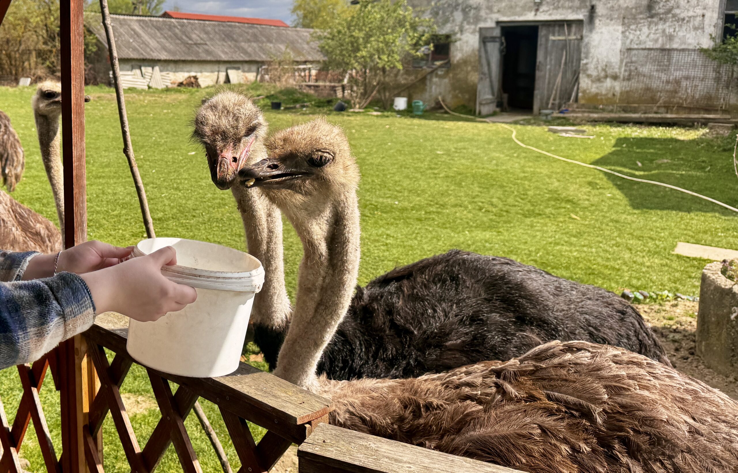 Окрім страусів, на території утримують і інших тварин – зокрема поні, ослів і гусей. Це робить ферму привабливою для родин із дітьми.