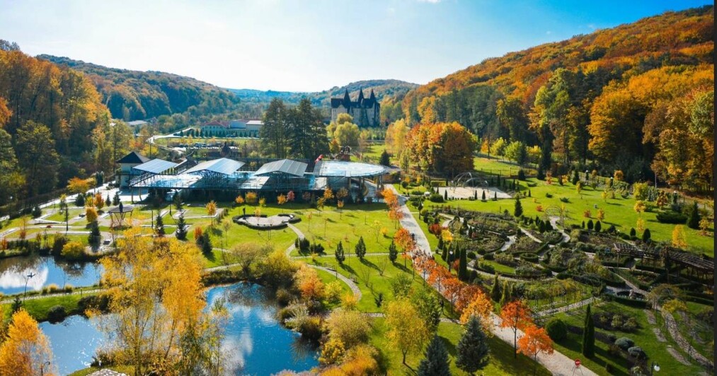 Прогулянка чудовим парком комплексу вражає, адже це справжній ботанічний сад із колекцією п’яти тисяч насаджень з усього світу!На понад 10 га цвітуть унікальні дерева, кущі та ліани, серед яких сакури (20 сортів з різним періодом цвітіння), розарій з тисячею троянд (понад 150 сортів), унікальна долина ірисів (180 сортів), магнолії (близько 30 видів і сортів). Також квітнуть біла, рожева та синя гліцинії, лілейники (близько 40 сортів), гортензії (48 сортів), декоративні яблуні (15 сортів), калина (11 видів і сортів), дерени (14 декоративних видів та 6 сортів їстівного дерену — кизилу), бузок (14 сортів), деревоподібні півонії, гортензії та рододендрони.